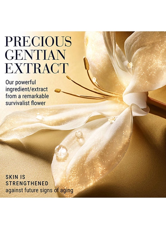 Despite the challenges of its environment, this flower regenerates every year. When the plants reach maturity, their stems turn magenta, signaling the hand-harvesting can begin. We extract and harness its precious energies for Re-Nutriv. The result is our precious Gentian extract, with a concentrated “survival molecule” and the power to boost a natural protein vital for skin’s structure.